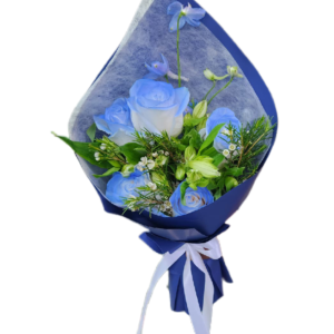 blue serenity bouquet – blue & white rose bouquet