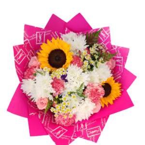 bright harmony – sunflower & mixed floral bouquet